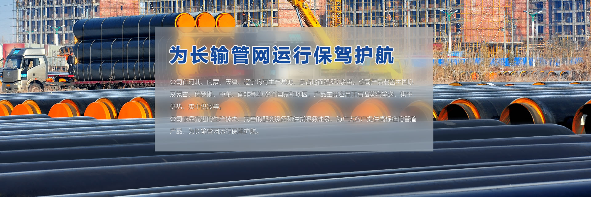 公司在河北、內(nèi)蒙、天津、遼寧均有生產(chǎn)基地,總占地面積500余畝。公司產(chǎn)品覆蓋中國以及蒙古、俄羅斯、中東、南非等20 多個國家和地區(qū),產(chǎn)品主要應(yīng)用于高溫蒸汽輸送、集中供熱、集中供冷等。 公司依靠先進的生產(chǎn)技術(shù)、完善的配套設(shè)備和供貨服務(wù)體系,為廣大客戶提供高標(biāo)準(zhǔn)的管道產(chǎn)品,為長輸管網(wǎng)運行保駕護航。